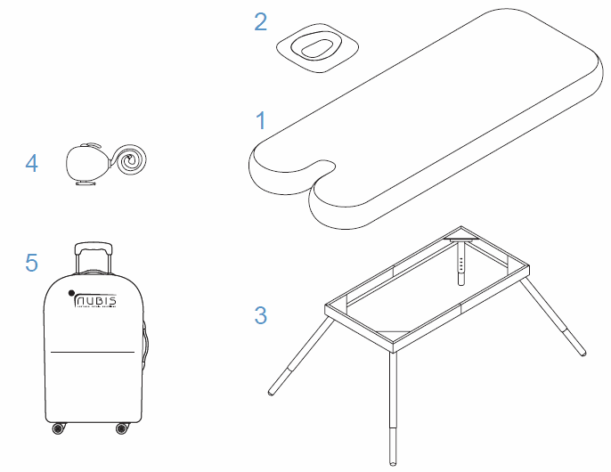 La base de la camilla esta hecha de Aluminio sólido de calidad superior, lo que le da a Nubis una gran estabilidad y una increíble capacidad de carga. Puede soportar el peso del paciente y del terapeuta a la vez.